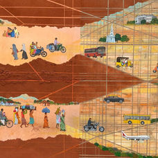 Sudhakar Chippa’s artistic practice explores the contrast between mechanical and organic materials, often depicted through urban cartography and geometric spaces in clay and wood. This juxtaposition reflects the ongoing tension between rapid modernization and the receding presence of nature. Rooted in his village upbringing Chippa’s personal experience informs his work to address themes of migration and conflicts between man and nature.