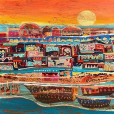 Artist Vinita Karim explains, “My work is built on imaginary cities, however you may see hints of many actual places in them: the blue of the Mediterranean Sea from Alexandria and Tripoli, the hulls of the boats from Padma river, Dhaka, the minarets of mosques from Istanbul, the flags flying on top of temples in Varanasi… These are the little details which emerge into my canvases like signifier of experiences, sensations and memories making each artwork unique.” This multicultural subject matter has made her original paintings, sculptures and installations popular with an international audience.